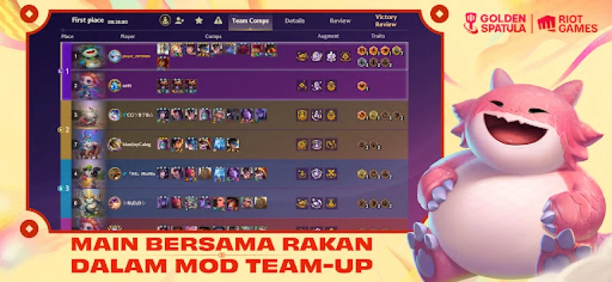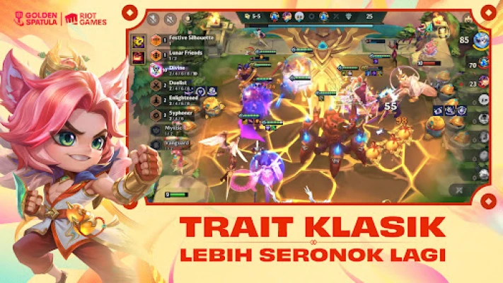 Tingkatkan keseronokan dengan mod Team-Up yang membolehkan anda bergabung tenaga bersama rakan. Bertarung bersama, naik pangkat serentak, dan kongsi setiap detik kemenangan atau kekalahan sebagai satu pasukan. Golden Spatula memastikan permainan yang adil dan positif tanpa perkongsian unit atau item, hanya semangat kerjasama murni. Jangan lepaskan peluang untuk menyertai Revival: Festival of Beasts yang kembali pada 5 Februari, membawa semula juara dan Trait kegemaran ramai. Sinergi Fortune kini memperkenalkan ciri Hujan Angpau, menjanjikan kejutan dan ganjaran berlimpah. Kumpul syiling penebusan untuk membuka Little Legends dan Boom eksklusif secara percuma. Anda juga boleh membuka 16 juara Lunar Revel yang istimewa, mereka ini akan menyertai pertempuran tanpa mengambil slot pasukan utama, membuka ruang untuk susunan strategi yang lebih kreatif.