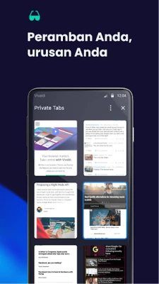 Alami pelayaran web yang benar-benar peribadi dan disesuaikan dengan Vivaldi, pelayar yang direka untuk anda. Kami percaya privasi anda adalah hak, bukan keistimewaan. Dengan Vivaldi, jejak digital anda kekal milik anda. Tiada penjejakan aktiviti, tiada data yang disimpan daripada tab peribadi anda; segala-galanya daripada sejarah carian hingga fail sementara akan lenyap sebaik sahaja anda menutupnya. Ini adalah janji untuk kebebasan digital yang sebenar, membolehkan anda mengawal sepenuhnya pengalaman dalam talian anda.