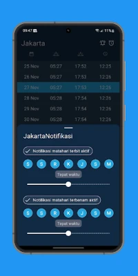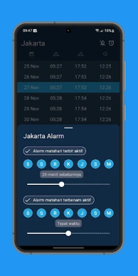 Jangan biarkan detik-detik penting berlalu begitu sahaja. Dengan fungsi penggera yang boleh disesuaikan, anda boleh menetapkan peringatan untuk matahari terbit dan terbenam setiap hari, lengkap dengan ciri tunda yang praktikal. Kekal dimaklumkan melalui notifikasi harian yang bijak, memberitahu anda tentang waktu cahaya utama tanpa perlu membuka aplikasi. Rancang aktiviti anda dengan yakin menggunakan alat carian manual yang membolehkan anda menyemak waktu matahari terbit dan terbenam di mana-mana lokasi di dunia, untuk tarikh semalam, hari ini, atau masa hadapan yang belum tiba.