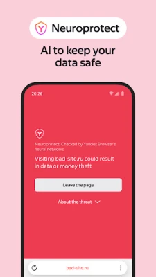 Temui Yandex Browser, pelayar web pintar yang direka untuk pengalaman melayari yang lebih pantas, selamat dan bebas gangguan. Ucapkan selamat tinggal kepada iklan yang mengganggu dan pop-up yang menjengkelkan dengan teknologi penyekat iklan bersepadu kami, memastikan setiap laman web yang anda lawati adalah bersih dan fokus. Yandex Browser tidak hanya menyekat gangguan, ia juga melindungi privasi dan keselamatan digital anda. Dengan sistem keselamatan aktif, ia sentiasa memantau dan melindungi anda daripada laman web berbahaya dan penipuan, terutamanya apabila anda menggunakan rangkaian Wi-Fi awam yang kurang selamat.