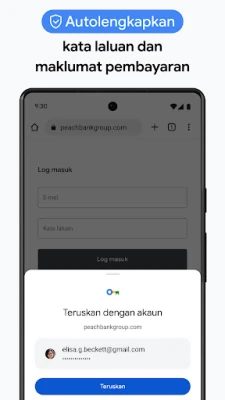 Alami kesinambungan digital yang lancar dengan Chrome merentas semua peranti anda. Penanda halaman, tab yang dibuka, dan kata laluan penting anda disegerakkan secara automatik, tersedia pada telefon, tablet atau komputer anda sebaik sahaja anda log masuk ke Chrome. Susun kerja anda dengan cekap menggunakan Kumpulan Tab, memastikan kekemasan merentas pelbagai peranti. Jimatkan masa berharga dengan Autolengkap, yang secara bijak mengisi butiran pembayaran, alamat dan maklumat log masuk yang disimpan, menjadikan proses pengisian borang dalam talian lebih pantas dan tanpa kerumitan.