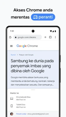 Memperkenalkan Chrome, gerbang utama anda kepada pengalaman web yang tiada tandingan. Manfaatkan sepenuhnya kepintaran Google terus dari pelayar anda. Cari jawapan serta-merta dengan carian teks atau bebas tangan menggunakan suara anda yang intuitif. Dengan teknologi Google Lens, dunia di sekeliling anda menjadi sumber maklumat – halakan kamera anda dan terokai apa sahaja yang menarik perhatian anda. Jangan biarkan batasan bahasa menghalang penjelajahan anda; Chrome membolehkan anda menterjemahkan keseluruhan laman web ke dalam lebih 130+ bahasa dengan satu sentuhan mudah, membuka sempadan digital global.