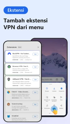 Microsoft Edge Browser: AI&VPN menawarkan penjelajahan pintar dengan Copilot AI dan ekstensi. Sesuaikan browser Anda dengan VPN, pemblokir iklan, pengelola kata sandi, dan pelacak harga. Gunakan Copilot untuk bertanya, meringkas informasi, dan mencipta gambar dengan DALL-E 3, meningkatkan produktiviti dan hiburan anda.