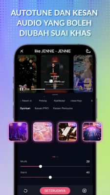 Melangkah ke studio peribadi anda dengan StarMaker, di mana berjuta-juta lagu hit tempatan dan antarabangsa menanti untuk anda nyanyikan. Pilih daripada genre kegemaran anda seperti Pop, Hip Hop, R&B, atau Folk, dan nyanyikan bersama muzik latar berkualiti tinggi serta lirik yang bergerak seiring melodi. Tingkatkan rakaman anda menjadi karya agung audio-visual dengan pelbagai kesan suara menawan seperti Jauh, Hangat, dan Pesta, atau serlahkan visual anda dengan penapis video estetik seperti Vintage atau Sunset. Dengan teknologi pembetulan pic, bunyi anda akan kedengaran profesional, manakala fungsi 'Hook' membolehkan anda merakam bahagian paling ikonik dari lagu kegemaran anda. Malah, berduet dengan artis terkenal atau menyanyi bersama rakan-rakan seolah-olah anda sedang mengadakan konsert mega!