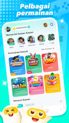 Namun, TopTop bukan sekadar platform padanan pasukan. Terokai koleksi permainan kasual yang memukau dan direka khas untuk menghiburkan anda berjam-jam lamanya! Dari aksi letupan yang rancak seperti Pop Pop dan Letupan Gula, cabaran ketepatan Bola 8, pengembaraan strategik Negara Ninja, hinggalah misteri menegangkan Siapa Penyamar, ada sesuatu untuk setiap citarasa. Kami sentiasa menambah siri permainan baru untuk memastikan keseronokan anda tidak pernah pudar. Sama ada anda mencari keseronokan pantas untuk mengisi masa lapang atau ingin menguji kemahiran bersama rakan, TopTop menjanjikan hiburan tanpa henti.